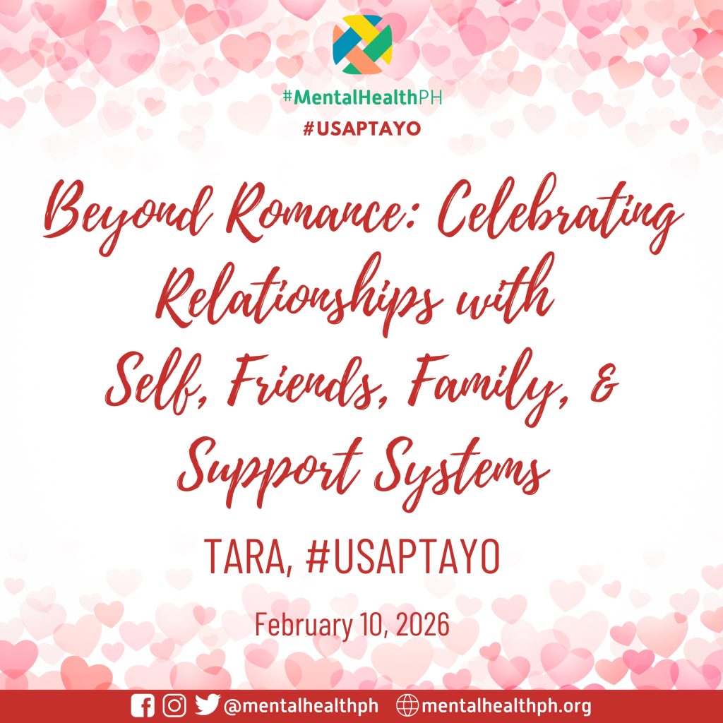 February is often framed around romantic love, but for mental health and well-being, relationships extend far beyond romance. For #UsapTayo, we shift the conversation toward a more inclusive and sustaining view of connection—one that recognizes the importance of our relationship with self, as well as with friends, family, and broader support systems.