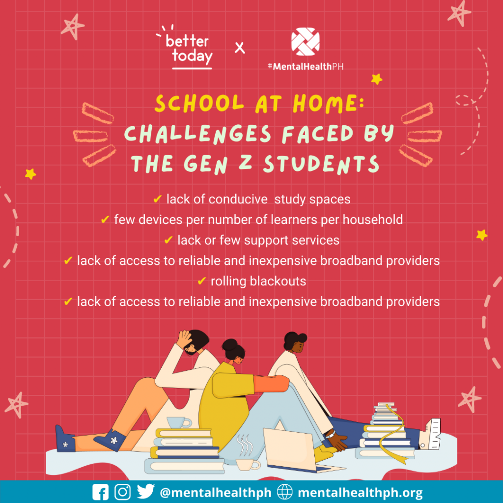 Among the most pervasive and most devastating realities that Gen Z students face include the lack of conducive study spaces, few devices per number of learners per household, and few support services catering specifically to students and Gen Zers. Individual students bear the burden of inventing or discovering workarounds to rolling blackouts, and lack of access to reliable and inexpensive broadband providers, and the lack of support services for those whose learning styles are not primarily text-based or rely on a set structure with subject matter experts. Filipino Gen Z students call for easing the burden of the academic load, for a return to face-to-face classes in light of the challenges so many of them face at home.
