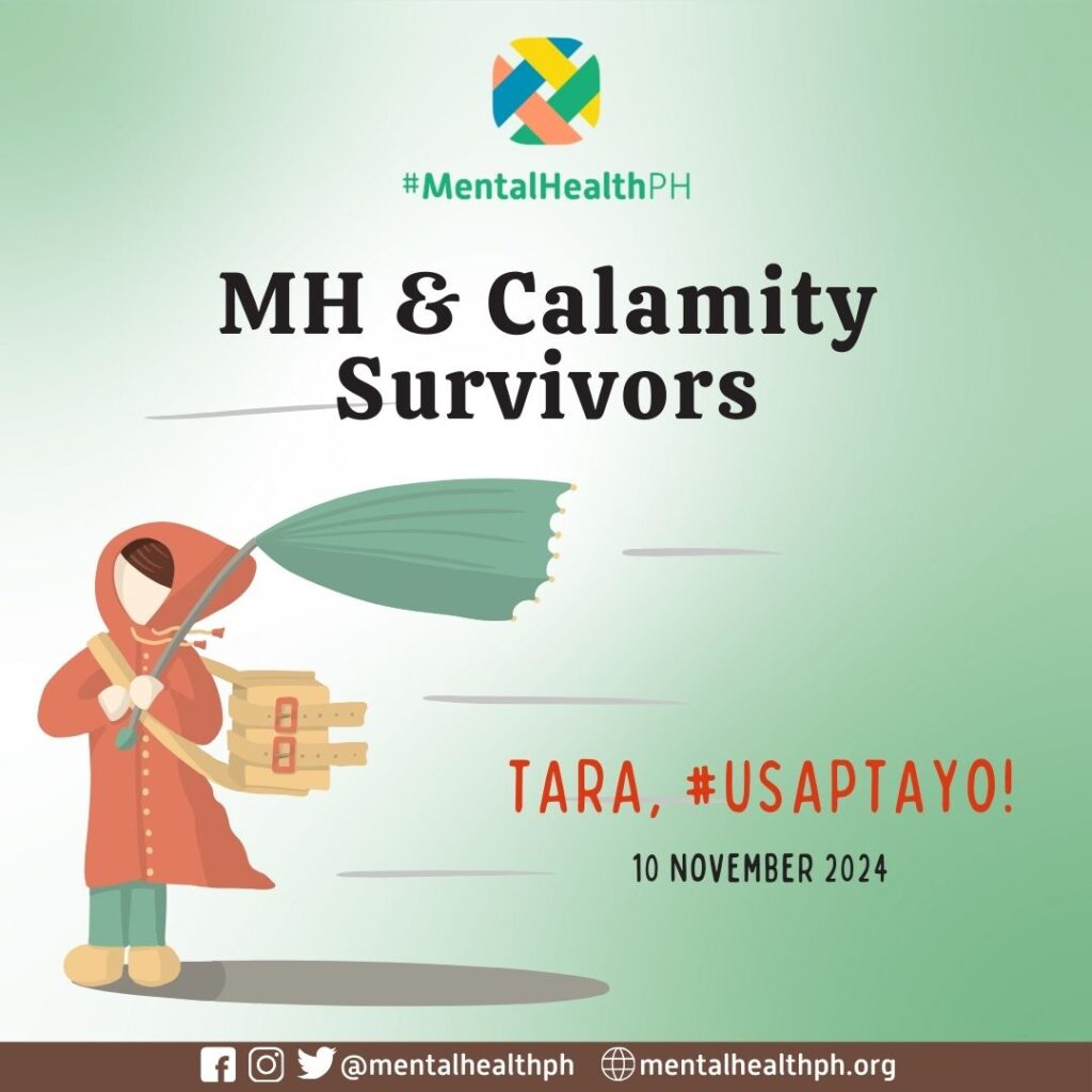 The first #UsapTayo for November 2024 comes after Typhoon #KristinePH which dealt massive damages to Bicol and Super Typhoon #LeonPH, which devastated the Batanes and the extreme northern Luzon. Understanding and addressing the mental health challenges of calamity survivors is essential for building a more resilient and compassionate society that can support its people in times of crisis.